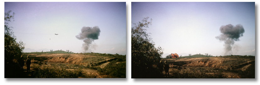 On the morning of 4 March, 1966 the objective area was strafed and bombed. Despite the prep of the landing zone, at 0900 hours the first wave of Marine Corps helicopters landing the 1st ARVN Airborne Battalion were taken under heavy ground fire. Anti-aircraft fire downed one of the armed escort UH-1Es and a Marine Phantom F-4 that was making a napalm run. The Marine aviators managed to land all the ARVN troops by 1030 hours. Once on the ground, the South Vietnamese troops met little resistance as they attacked north and then west toward hill 50. Having completed the insertion of the ARVN, the helicopters returned to Chu Lai and would begin to ferry Lt. Col. Utter’s Marines to the objective area. During the first wave, the helicopters were once again taken under fire and the 1st Platoon of Kilo Company was isolated for 15 minutes before the rest of the Company could be landed. Foxtrot and Golf companies and the battalion command group were on the ground by 1130 hours, and met little initial resistance. Hotel Companys’ arrival was delayed until 1300 hours due to heavy ground fire directed at their helicopters. With reports coming in from the battlefield, it was decided to expand the operation and Task Foce Delta was reactivated with Gen. Platt Commanding and Col. Peatross as his Chief of Staff. A command post was set up on Nui Tien An (Buddah Hill) just north of Quang Ngai City in close proximity to the 2d ARVN Division Headquarters, which was located in Quang Ngai City.