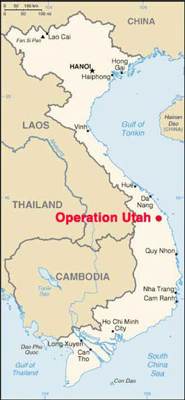 Another document held by the Virtual Vietnam Archive is an historical narrative of the events leading up to Operation Utah, of the operation itself, and of its aftermath. It is titled simply “Operation Utah”. In the following version, I have taken the liberty of correcting some spelling and punctuation errors, changed the time references to 24-hour military time, and changed ”NVA” (North Vietnam Army) to “PVN” (Peoples’ Vietnam Army). See the sidebar at the right for the historical background of “PVN”.